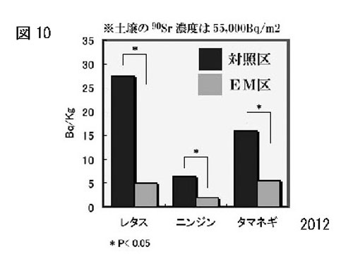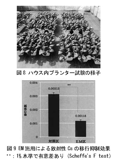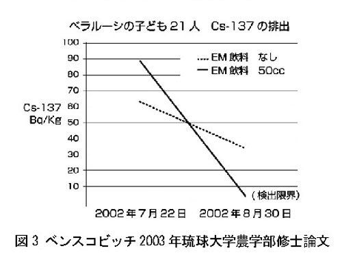 EM による放射能対策については,1995 年からチェルノブイリ原発事故の被災国のベラルーシ国立放射線生物学研究所との共同研究で作物に対する放射性セシウムとストロンチウムの顕著な移行抑制と放射線被曝対策に効果が認められ,2002 年までにEM 発酵飲料(EM・X)による内部被曝対策が実証されたのである。